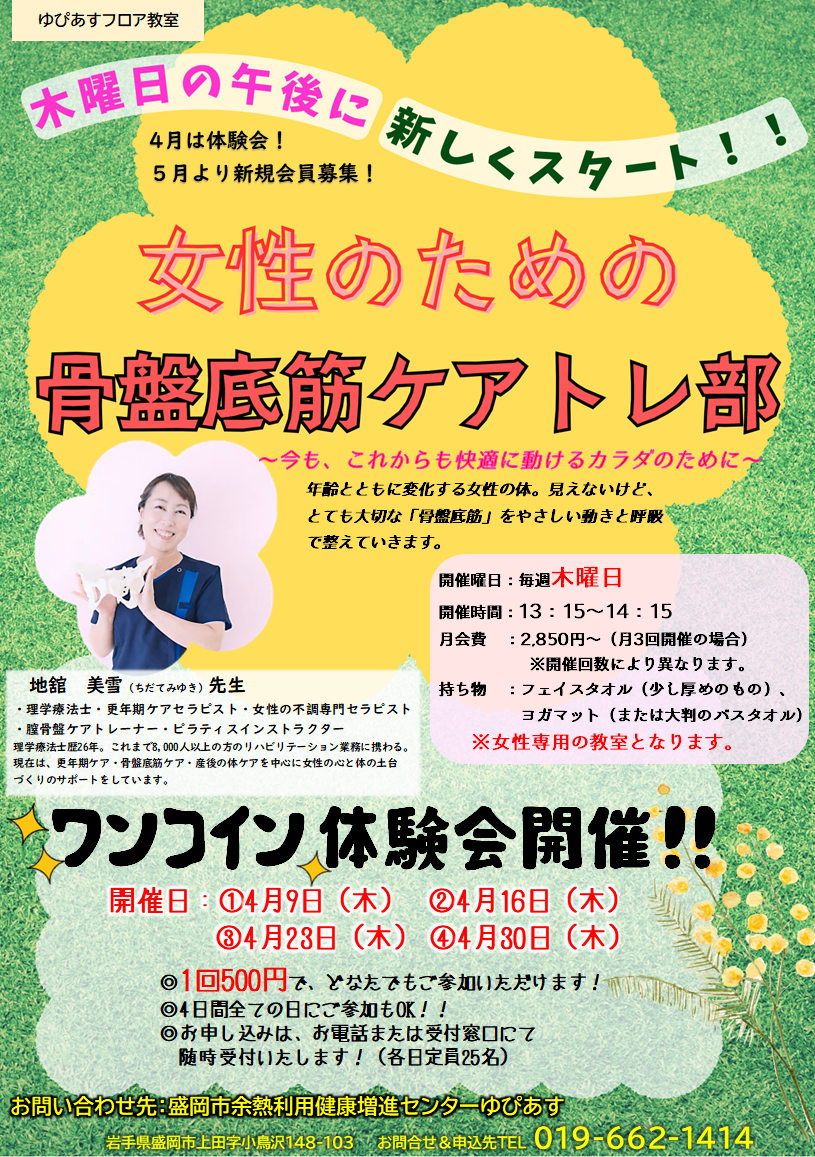 *フロア教室(5月から)    女性専用「骨盤底筋ケアトレ部」