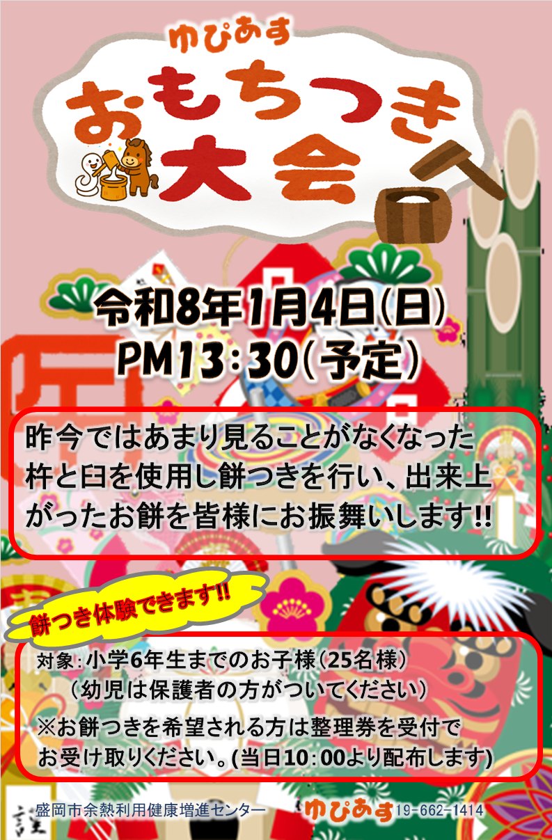 ゆぴあすでは13日(土)、14日(日)、15日(月)の3日間、